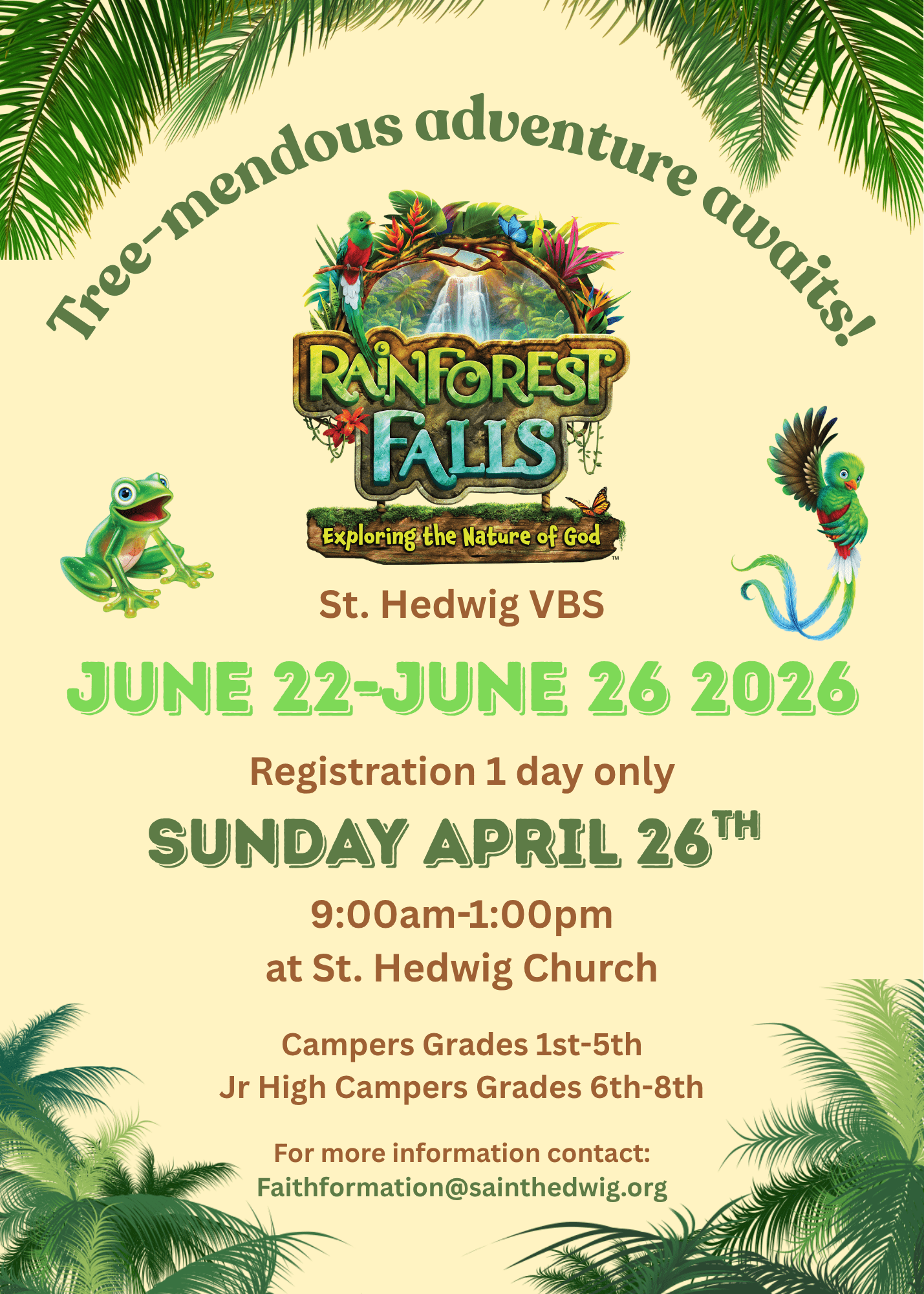 Get ready for a tree-mendous adventure this summer at St. Hedwig Vacation Bible School! VBS will be June 22nd-June 26th from 8:30am-12:00pm and is open to children in grades 1st-5th in fall 2026. This […]