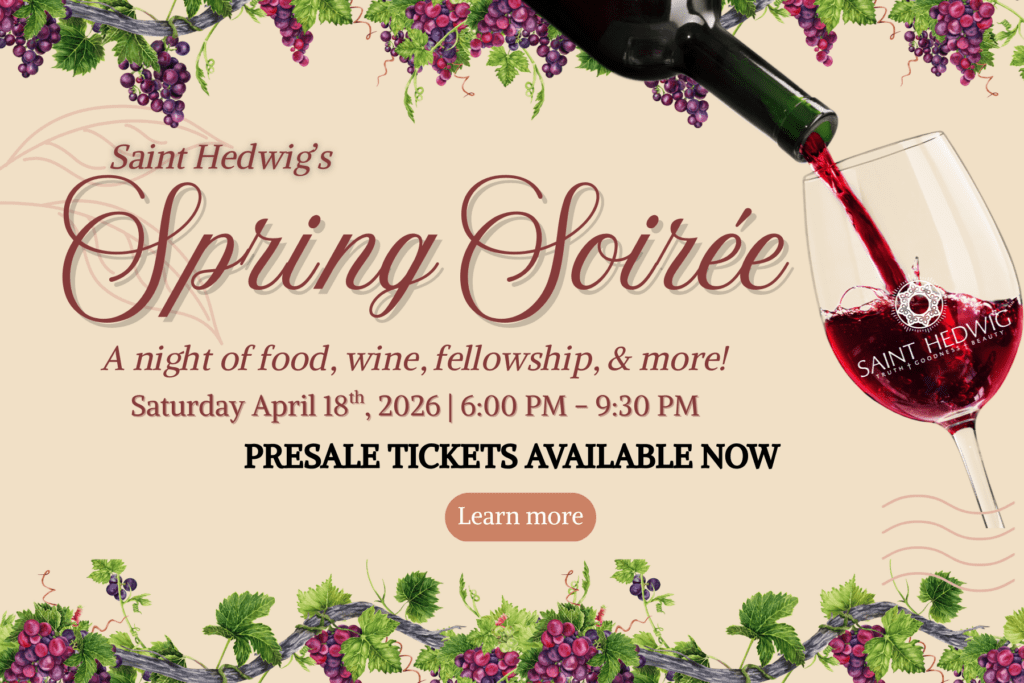 St. Hedwig Church’s Bible study program is a 21-week series that will explore the entirety of Jesus’ life and what he means for us as Catholics today. Sessions meet weekly on Thursdays (with holiday breaks) starting Thursday, September 25, 2025 – Thursday, March 26, 2026 in Quinn Hall.