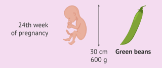 My head and body are in the right proportions now. I look like a small doll! I am very skinny because I don’t have much body fat, but I am growing so much now that in a month my weight will double! My heartbeat can be heard through a standard stethoscope. The bones in my middle ear have hardened. Low-frequency sounds penetrate the womb better than high frequency which means I can hear my dad’s voice better than my mom’s. Sometimes I get very excited when I hear my dad talk and I start moving around to let him know I can’t wait to play with him. My body is so amazing that if I were born now, I would have a 15% chance of surviving. Every day, my chances of surviving get better. Please continue to pray for my mom, dad, and me. Thank you!