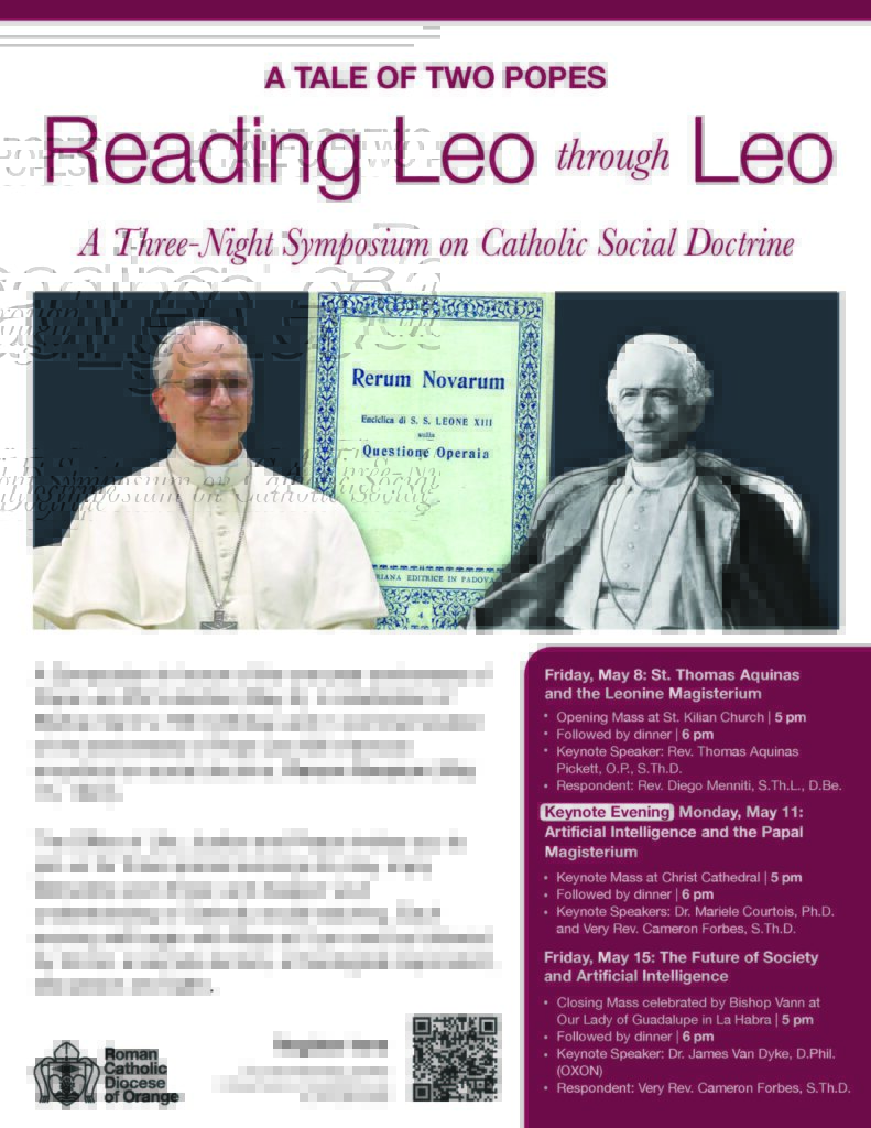 The Office of Life, Justice and Peace is hosting a three-night Symposium on Catholic social doctrine. Please join us on May 8, 11, and 15 for Mass, dinner, engaging lectures, and fellowship.